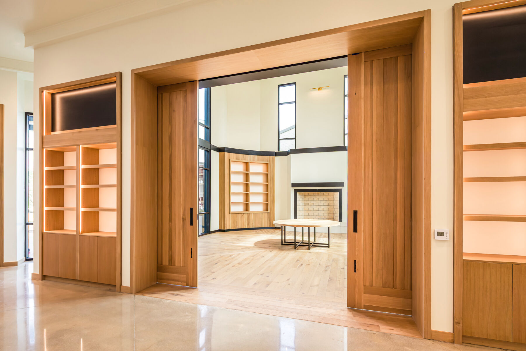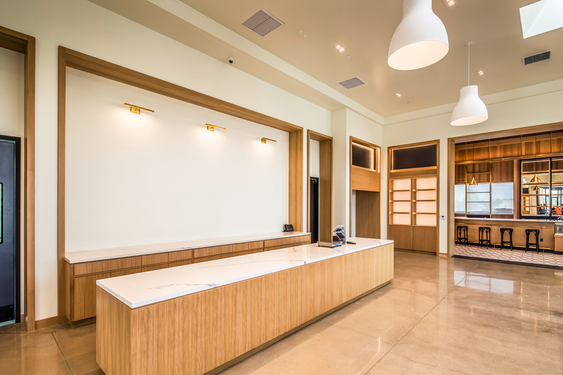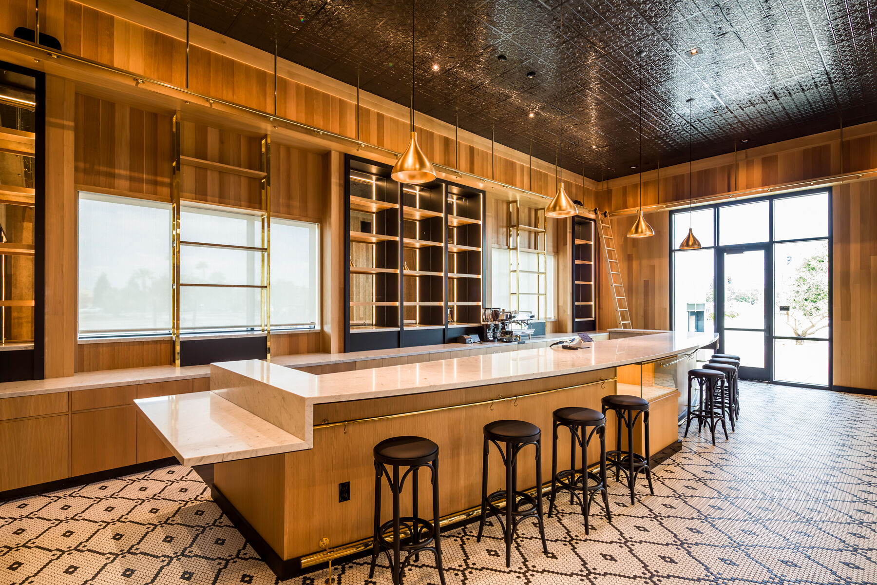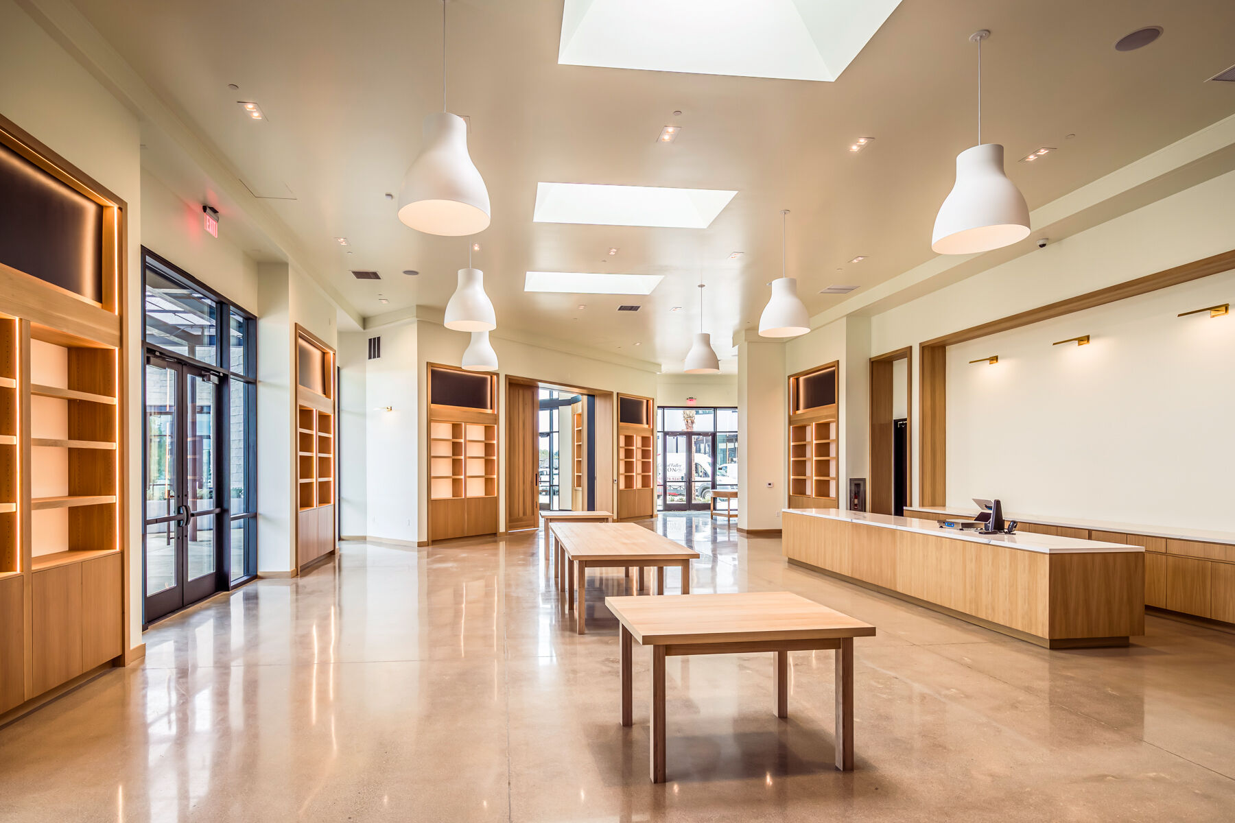 Enzo's Table is a retail space in a detached single-story building, part of a new commercial development also constructed by Quiring. This tenant improvement project has a mercantile shopping area, a café with a bar, and support spaces that include an office and kitchen area.