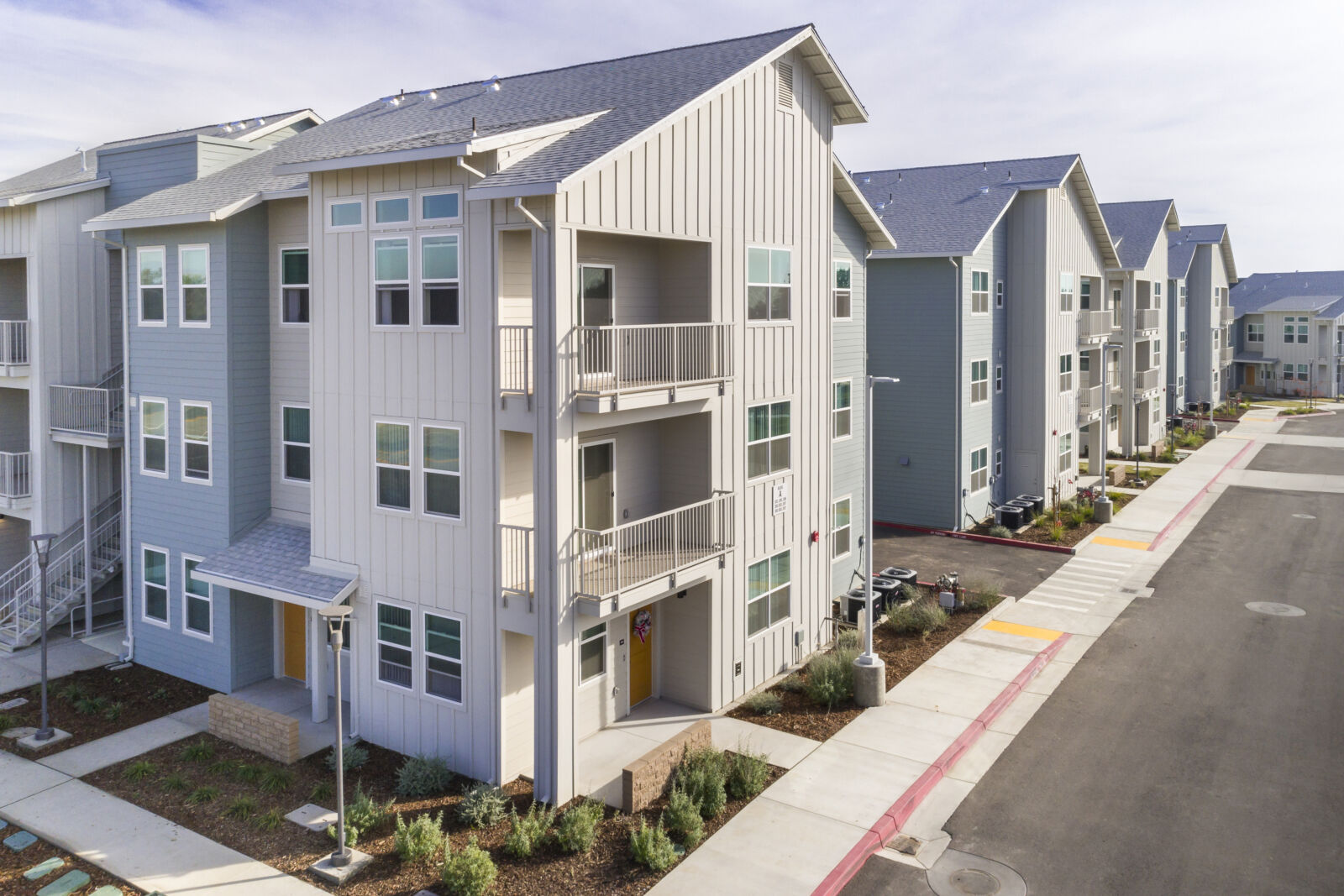 Guardian Village is a 48-unit affordable housing community designed to serve low-income families and farmworkers in Reedley, California. The development spans a 2-acre site and features 60,581 square feet of building area, including four three-story apartment buildings, one two-story apartment building, and a single-story community building. The unit mix comprises 22 one-bedroom, 14 two-bedroom, and 12 three-bedroom apartments, all equipped with energy-efficient appliances, lighting, and washer/dryer hookups.