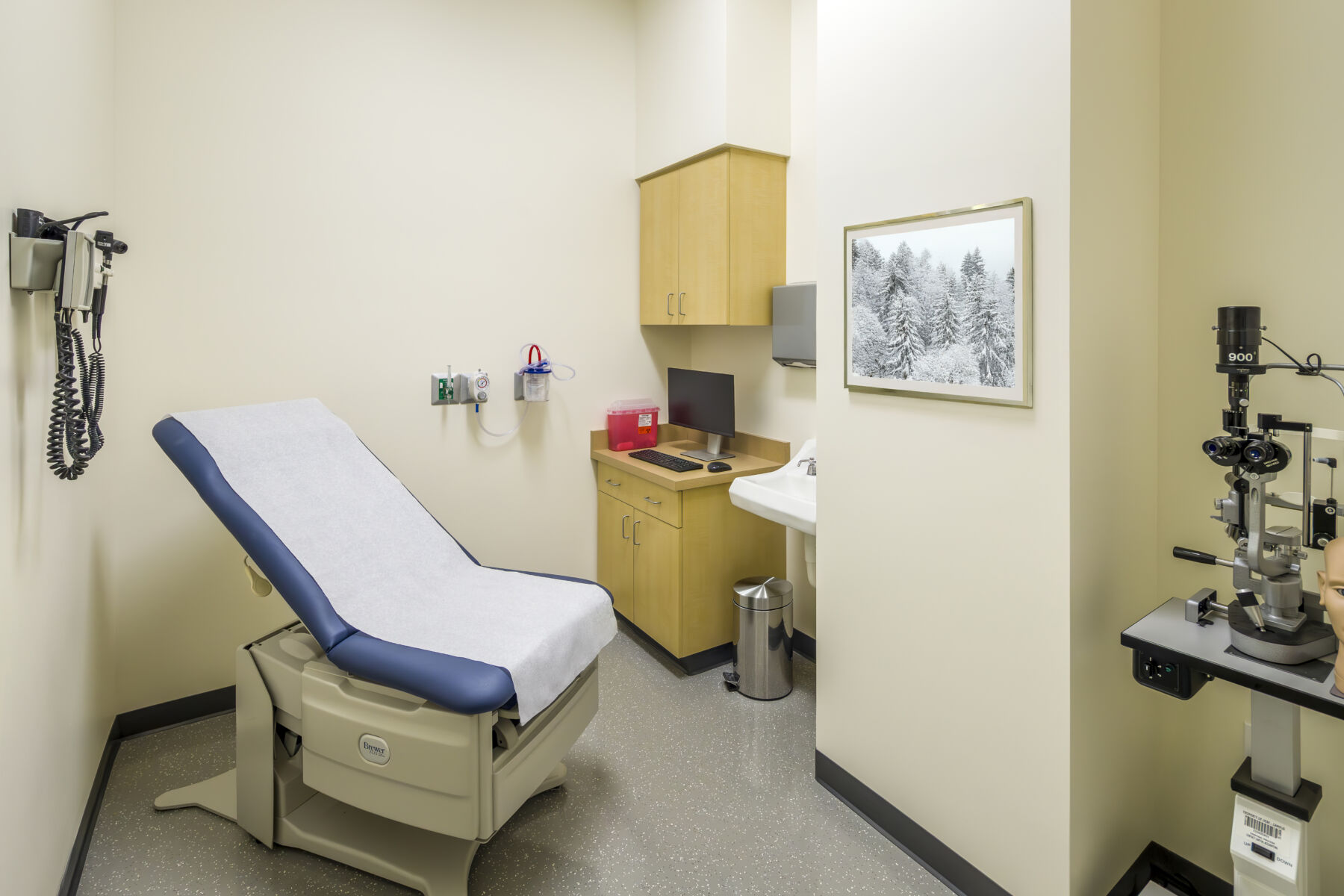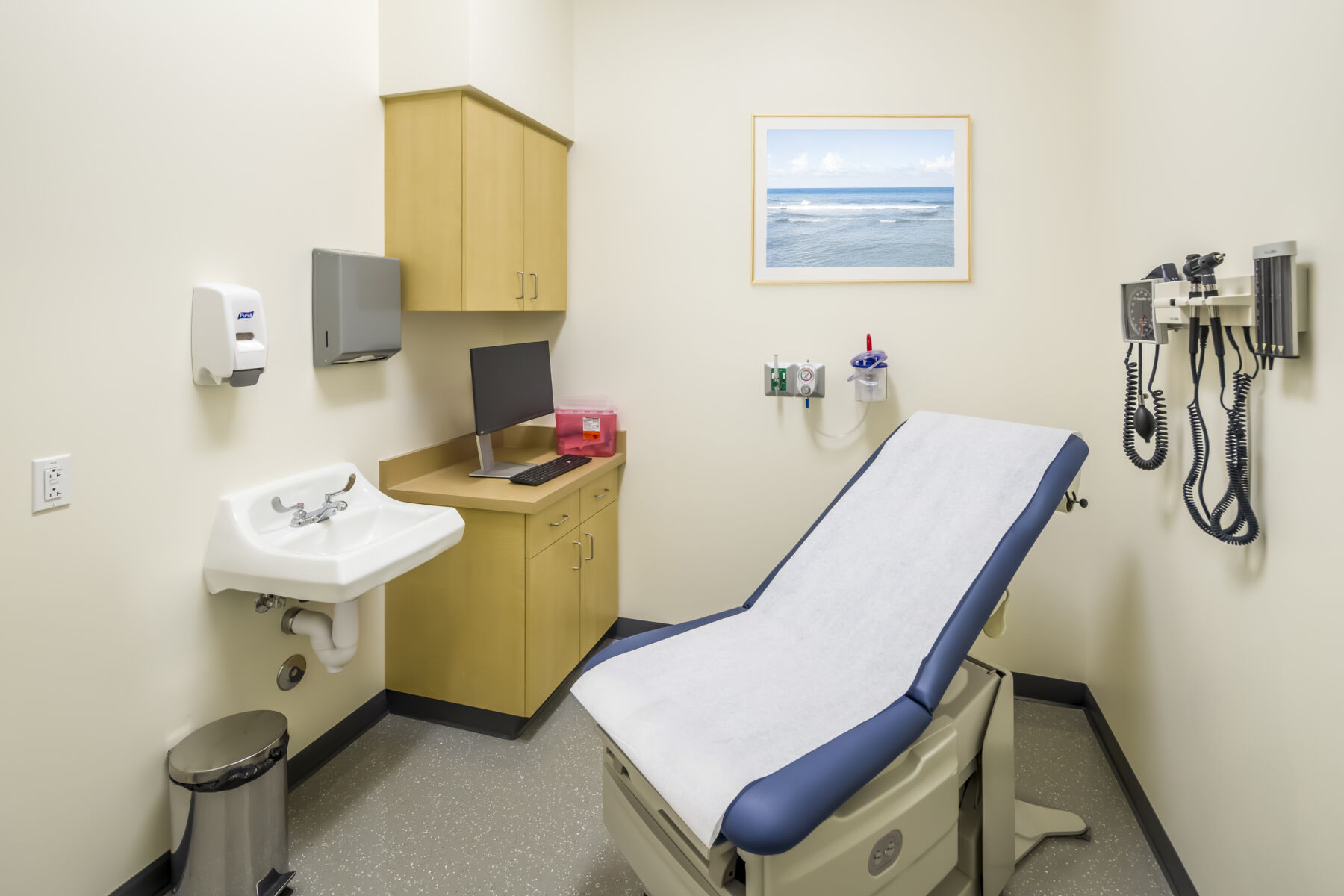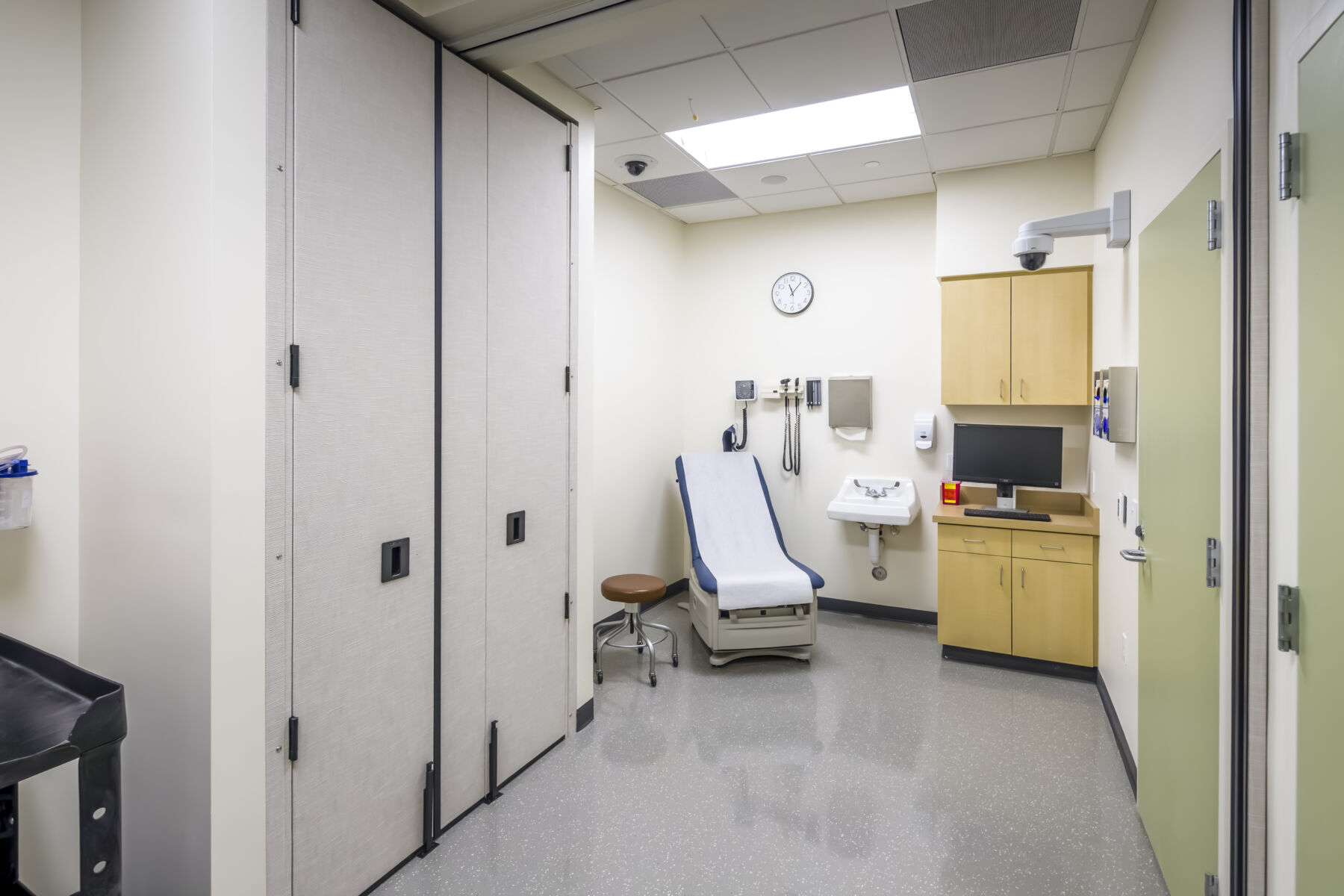 The UCSF Fresno Simulation Laboratory tenant improvement converts an existing lab space into a 2,500-square-foot advanced clinical training facility. The project delivers new exam rooms, high-fidelity simulation suites, and a central control room/observation gallery designed to replicate real patient care environments for over 300 residents and students annually. Support spaces include equipment storage and gurney-width corridors that connect training units, ensuring seamless movement of equipment and personnel throughout the facility.