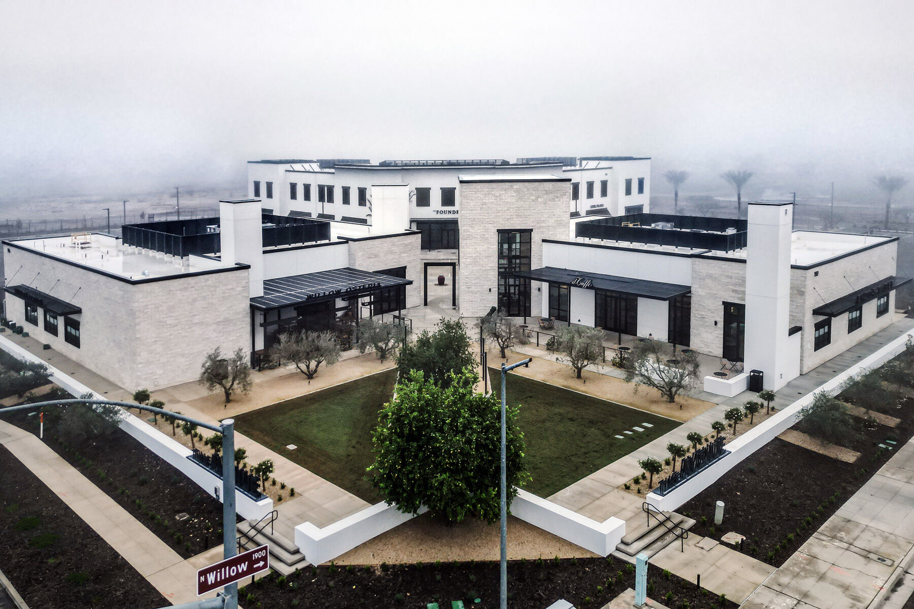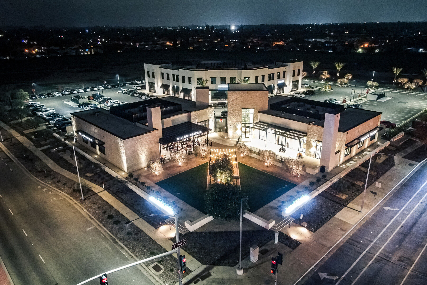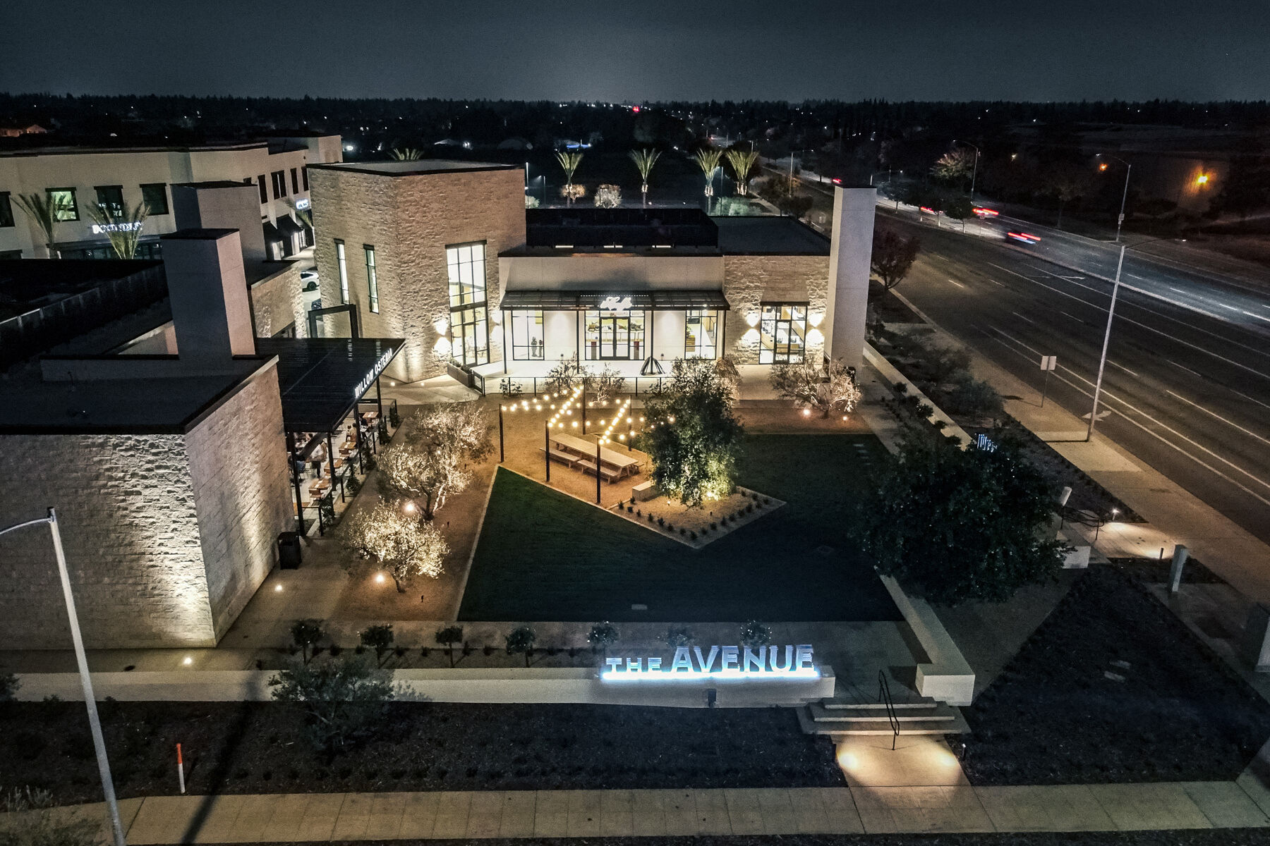 The Avenue is a new mixed-use commercial center featuring three ground-up shell buildings on a 4.8-acre site. The development includes two single-story buildings for commercial tenants and a two-story building with ground-floor storefronts and office suites above. A central plaza offers space for outdoor gatherings with integrated seating. Site infrastructure is prepared for future commercial development.